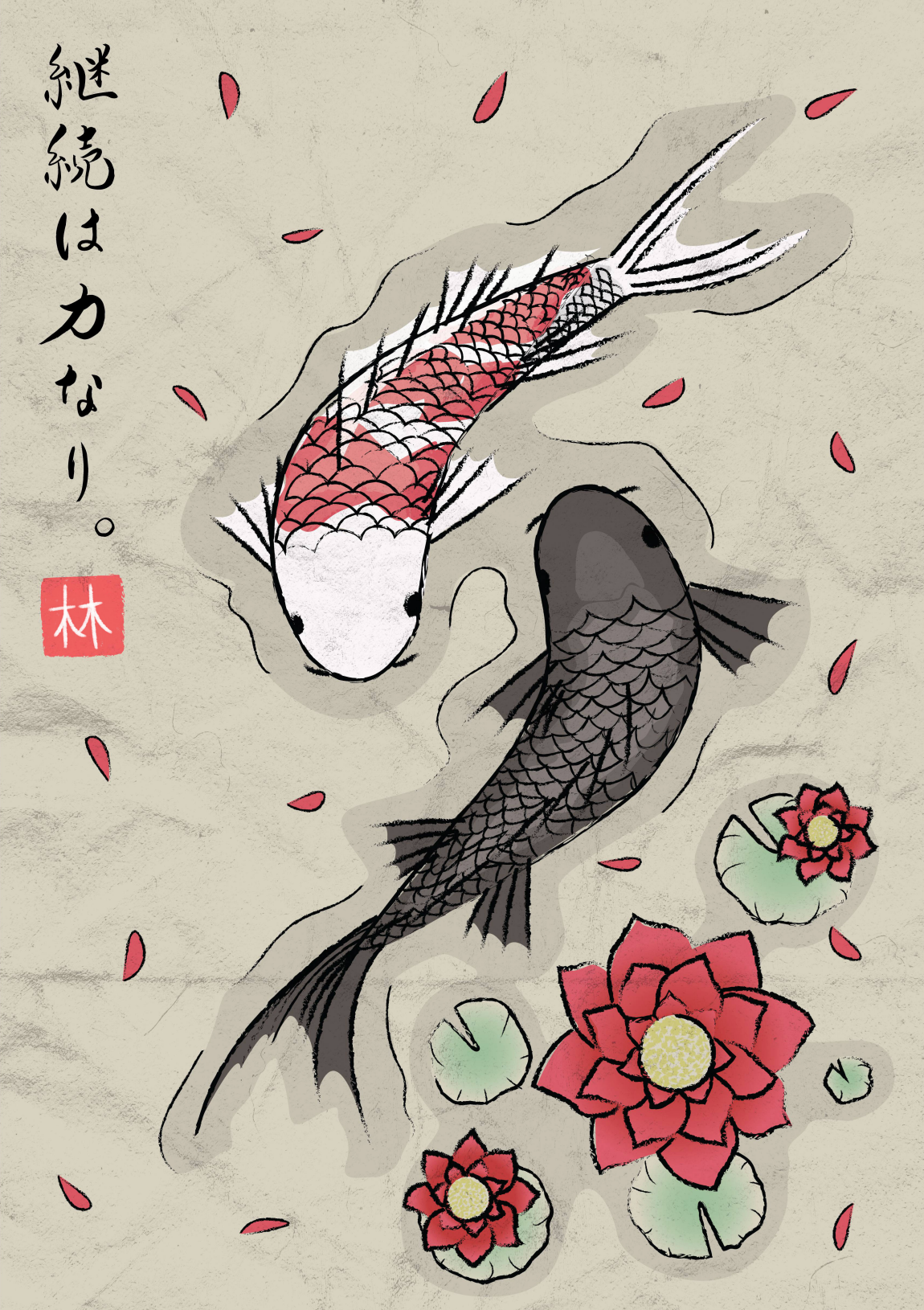 Adobe Illustrator • transitional • Japanese • koi fish • persistance • Tee Junction
