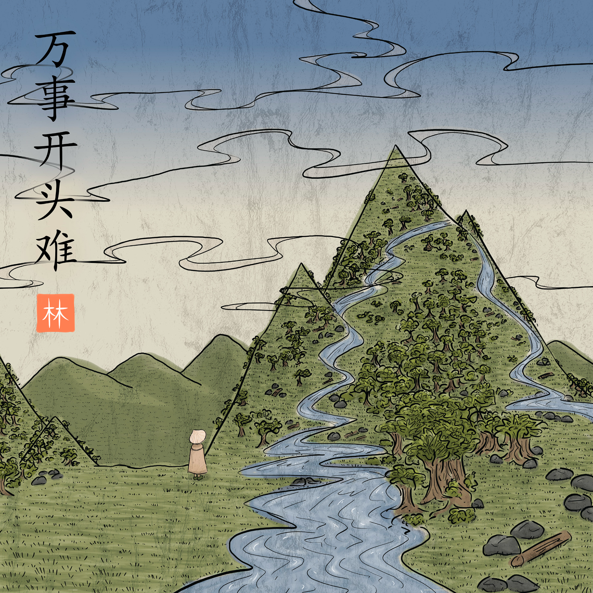 Medibang Paint Pro • Adobe Illustrator • Philosophy • Chinese • First Step Is Always the Hardest