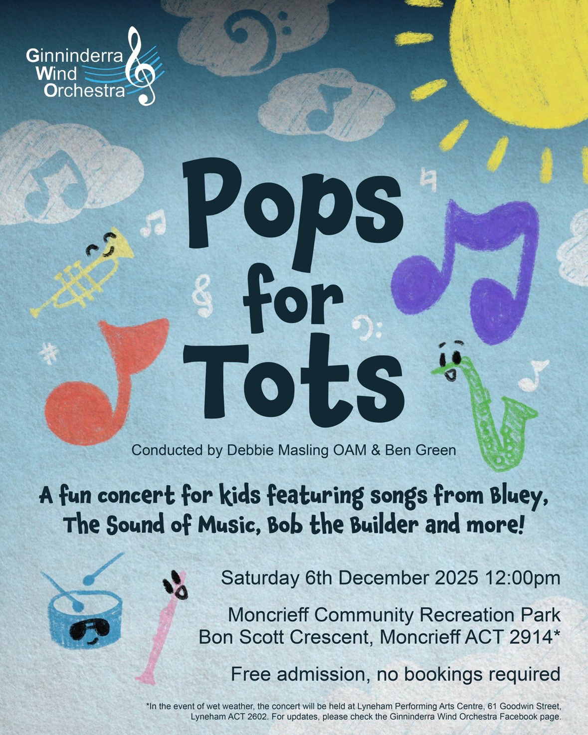 For the Ginninderra Wind Orchestra’s Pops for Tots children’s concert, I designed a playful and nostalgic poster that captures the joy of music from a child’s perspective. Crayon textures, bright colours and imaginative shapes inspired by childhood creativity were used to create a visually captivating design for young audiences and families alike.